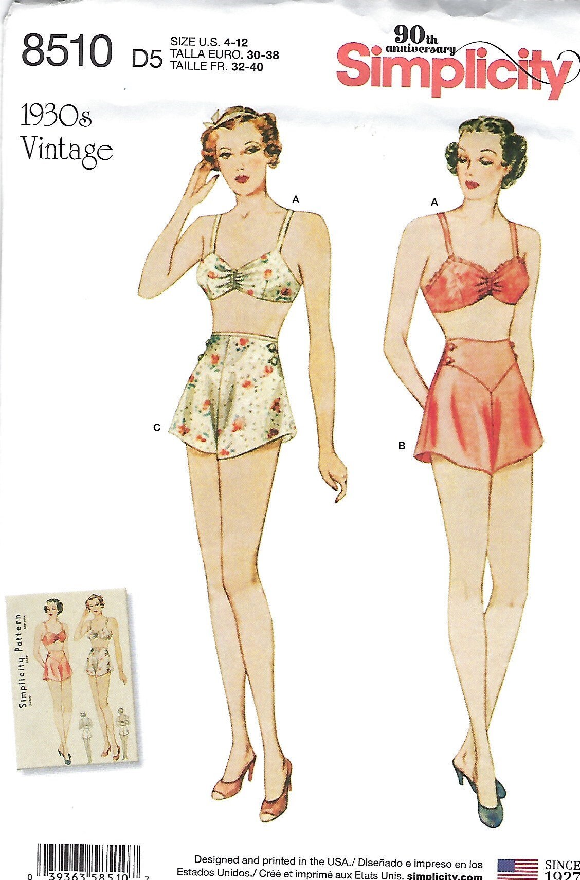 1930s Lovely Lingerie Set Bra And Tap Pants Pattern Simplicity 1517 Bust 34 Vintage Sewing Pattern Factory Folded